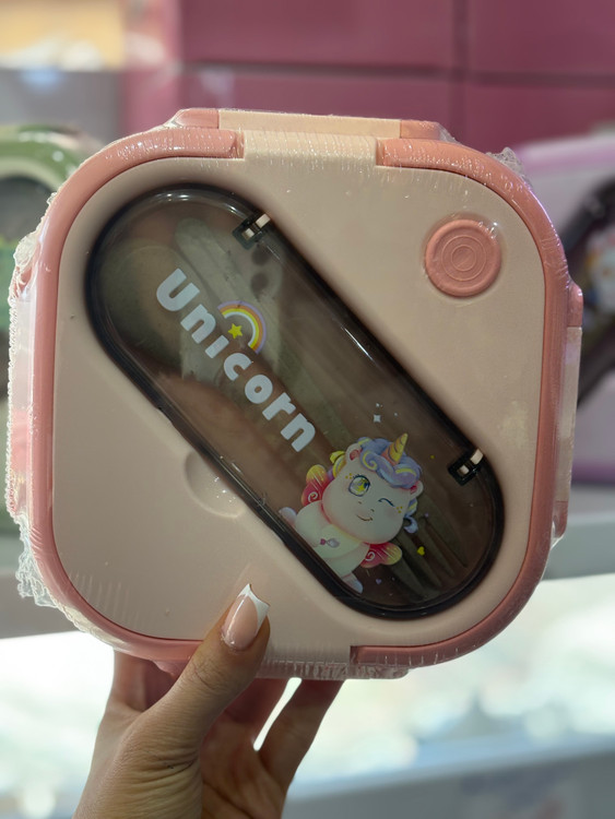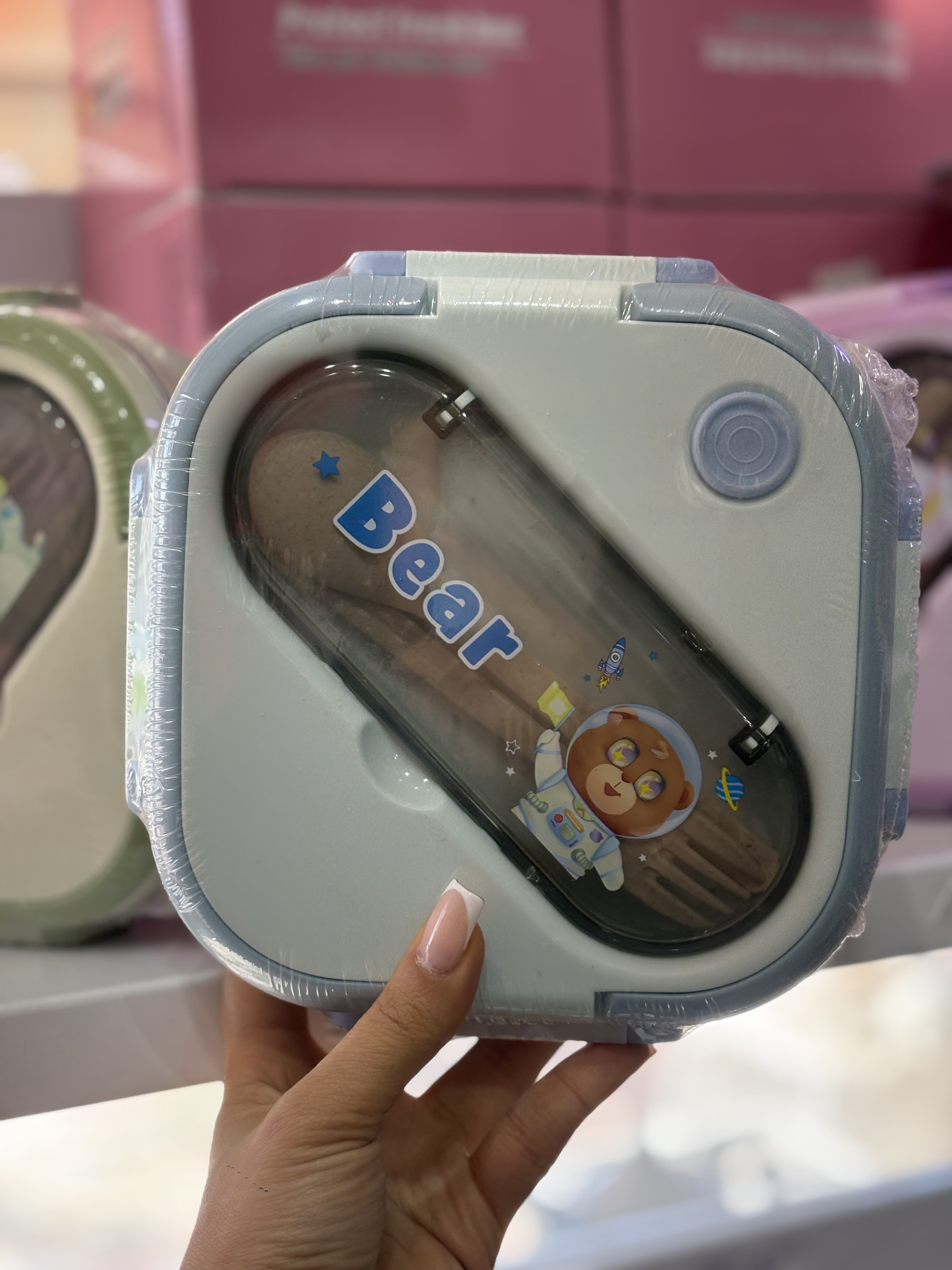 ظرف غذای قاشق دار کودکانه داخل استیل بدنه پلاستیکی ۱۰۰۰میل